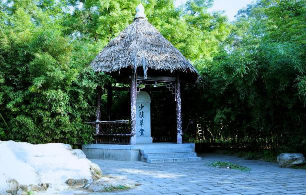 步入有名的诗史堂,四壁上皆是杜甫的诗。他的诗歌大都揭露了那血淋淋的事实,反映唐王朝由盛转衰的经历,所以后人把他的诗誉为“诗史”,此堂即由此得名。在堂中杜甫正坐在石头上,思索着国家命运,为百姓担忧。现在的茅屋已是重新修建的,与其说那是一座建筑,不如说它是一种寄托。