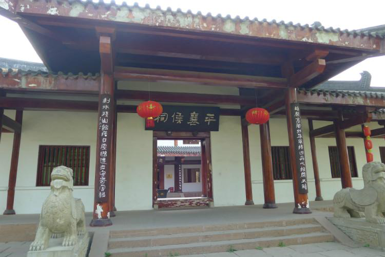 平襄侯祠:在景区东南,有平襄侯祠,祠前广场上,有姜维塑像,名叫姜维点将台。平襄侯祠又称姜维祠、伯约庙、姜公祠、钵盂寺。姜维祠始建于明正德年间,分前后两院,前院塑刘关张坐像,名武圣宫,后院正殿塑姜维坐像,名忠勤祠。看到的姜维祠是2009年在原址上重建的,重建的姜维祠基本保持了原有的建筑风貌,包括姜维殿、孔明授书殿和姜维墓,属于墓祠。