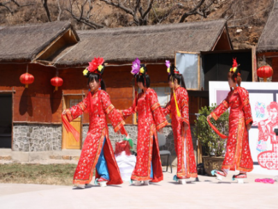 而在节日庆典期间,在太阳峪村还能够看到热闹非凡的歌舞庆典活动。据《渤海国记》记载:“官民岁时聚会作乐,先命善歌舞者,数辈前行,士女相随,更相唱和,回旋婉转,号曰’踏追’。”踏追也就是踩高跷。至今,这个习俗仍沿袭不衰。每年春节初一至初五,人们都相聚一处,唱歌、跳舞、踩高跷、尽情娱乐,有的地方,年轻人还自发组织演出队,走村串屯进行表演,祝贺新年,节日气氛更加浓郁。