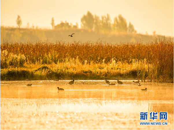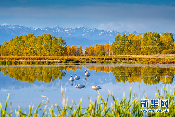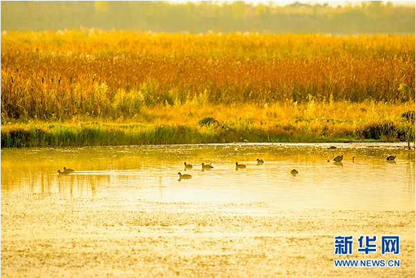 特克斯河国家湿地公园成了天鹅、黄鸭、白鹭、大雁生活栖息的天堂。新华网发 李文武摄