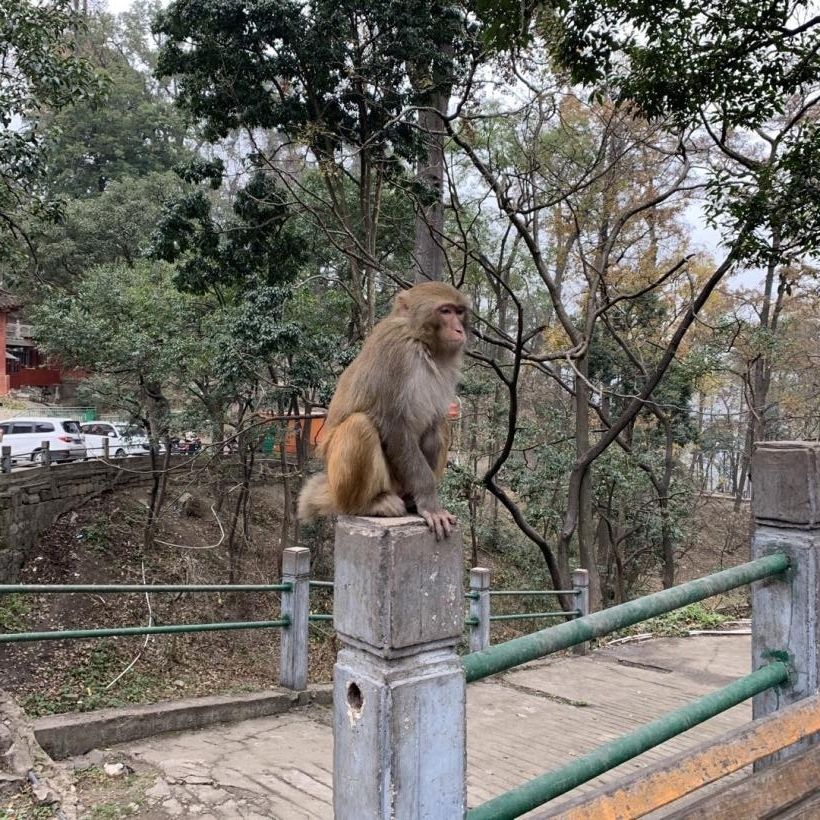 猴子:对于贵阳市民来说,黔灵山“灵气”的最直接体现,就是这群生活在山上的猕猴,甚至有不少游客就是专门为了看猕猴而来。园内现存上千只散养半野生猕猴,是黔灵山的一道亮丽景观,只要进入公园,就能看到它们的身影,或在树上,或在路旁,或三五成群与游人为伴。猕猴虽然亲人,但也有其野蛮的一面,它们会哄抢游客暴露出来的食物。