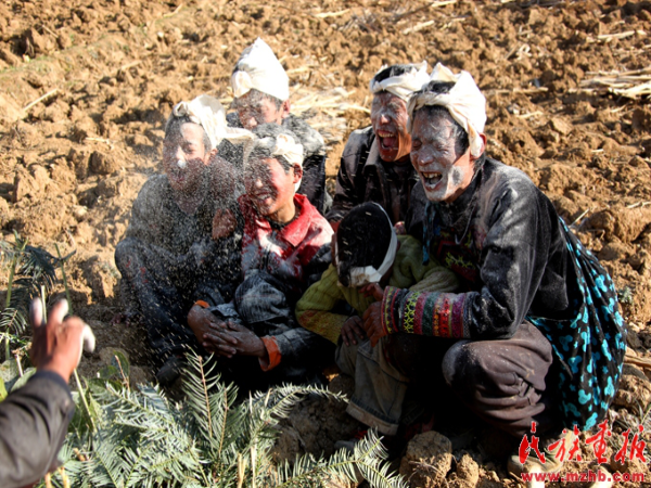 稍不注意,一个俏皮美少女就把锅灰抹在了我们脸上,正准备擦去时,毕摩告诉我们说,不要擦,这是在打标记,晚上请祖灵吃饭时,一旦有活人的灵魂前去参加宴席,毕摩就容易分辨,好把活者的灵魂赶出来了……