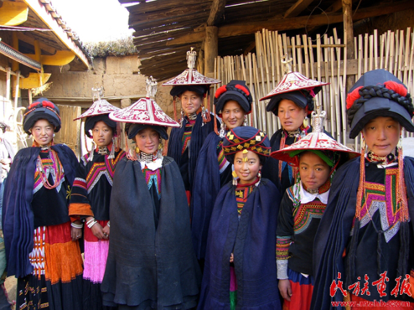 我们来到坐落在青山绿水间的毛洪觉村时,正好赶上了阿克家迎接姻亲时相互比美、比富、嬉戏、挑逗等热闹场面。