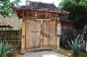 位于云南省西双版纳傣族自治州景洪市嘎洒镇新寨村的新寨村史馆,是一座展现哈尼族传统文化的小型村史馆。该馆矗立在寨子边缘处,是一栋具有哈尼族特色的建筑。院子的门楣上刻着十二生肖,门上的插销是一块木板,一伸手就能取下,十分古朴。