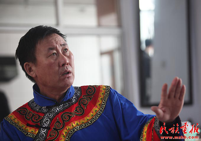 赫哲族独特说唱艺术伊玛堪的传人吴宝臣(袁东平 摄影)