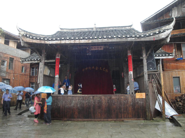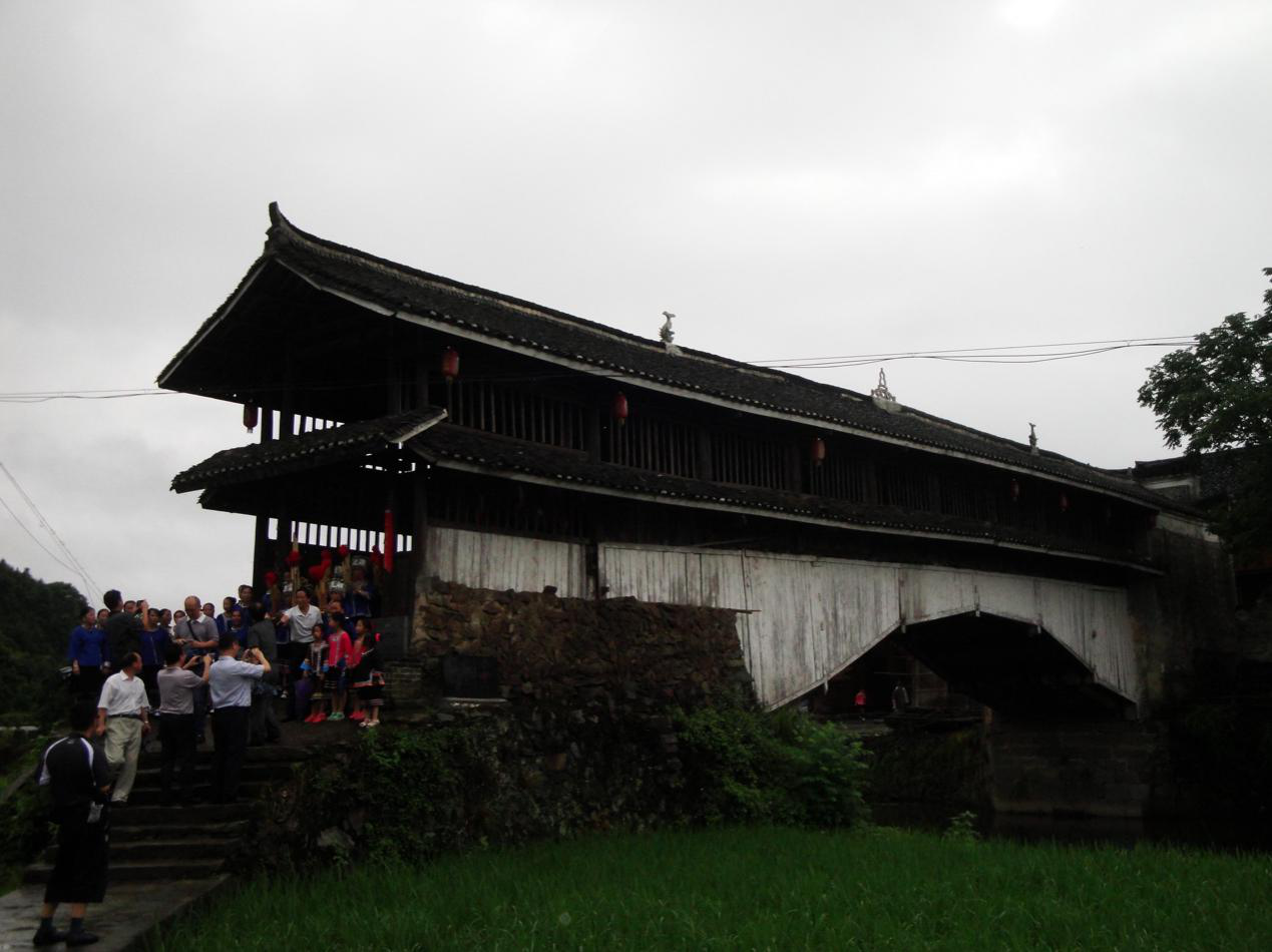 令人称奇的是,风雨桥不管其外形有多么讲究,规模有大有小,均与村寨整体融为一体,还与寨子里的鼓楼、祠庙等标志性建筑物互为映衬,产生和谐之美。古时大山阻隔,村寨人外出往往需要翻山越岭,风雨桥是旅人唯一的“避风港”,往往是附近村民凑钱凑力,齐心协力修建一座风雨桥。但对于侗族人来说,风雨桥除遮蔽风雨、互通有无之外,还是宗教祭祀的场所,桥上往往设有文昌、关圣、土地的神龛,逢年过节,村人都要前来拜祭;举行庆祝活动时,往往全村各户都端来“拿手菜”,在此拼成长条桌一起共享美酒佳肴;桥上设有长凳,常年有人义务供应凉水,村人在劳作之余在此歇息,疲惫路人在此饮水,年轻男女在此对唱情歌,互表衷肠。