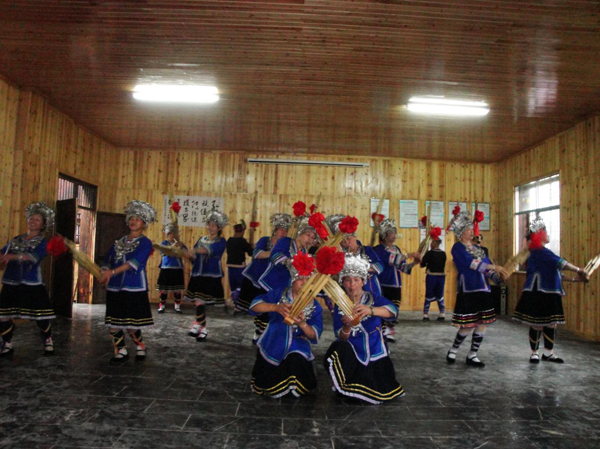 这里侗族传统文化底蕴深厚,大部分村民依然穿戴侗族服饰,男女皆能吹芦笙,老人还会吹侗笛。最有乐趣的习俗之一还是属“种公地”。这是侗族一种十分古老而富有特色的婚恋习俗。每年二三月份,各寨都要组织芦笙队到乡镇聚会或比赛;赛后,各山寨就约定日子、互相邀请对方寨子组织男女青年到自家寨子来“种公地”,侗族话叫“月地瓦”。邀请方为主寨,被邀请方为客寨,主寨、客寨的女青年要准备一个见面礼物——禾草结,一种用禾草打成的精美的结,再用丝线装饰。