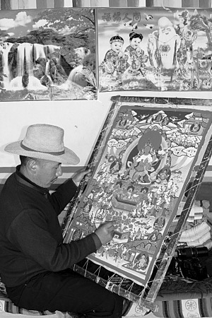 唐卡艺人在绘画