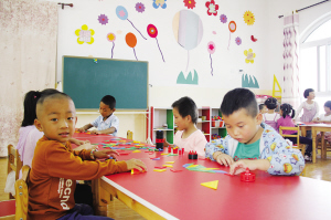 慈王村新建的幼儿园里,小朋友在开心地玩耍。