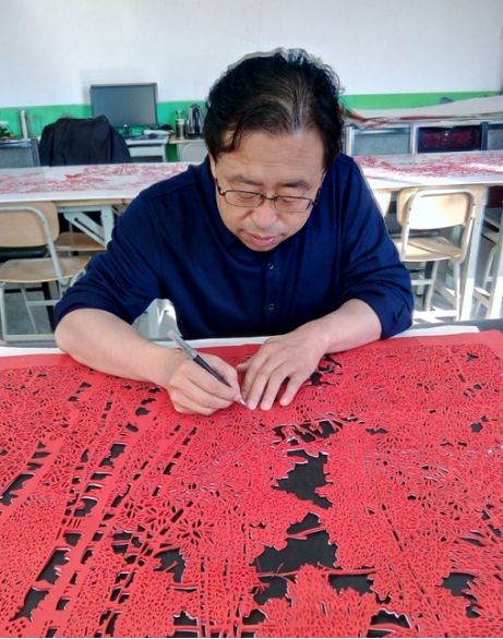 赵守杰的母亲是一位剪纸艺人,他自幼在母亲的影响下习得“细纹刻纸”的技艺,后来学习了美术专业,研习绘画、书法,凭借着深厚的美术功底,赵守杰在刻纸上融入了大量的艺术元素,美术元素与刻纸技艺相辅相成、水乳交融,这让赵守杰的“细纹刻纸”作品在艺术上达到了新的高度。