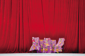 壮剧舞台布置简单,一挂红幕、几张凳子就可以上演大戏。