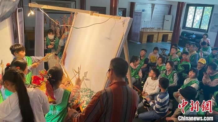赵增涛正在指导小朋友们演绎皮影戏。 受访者供图