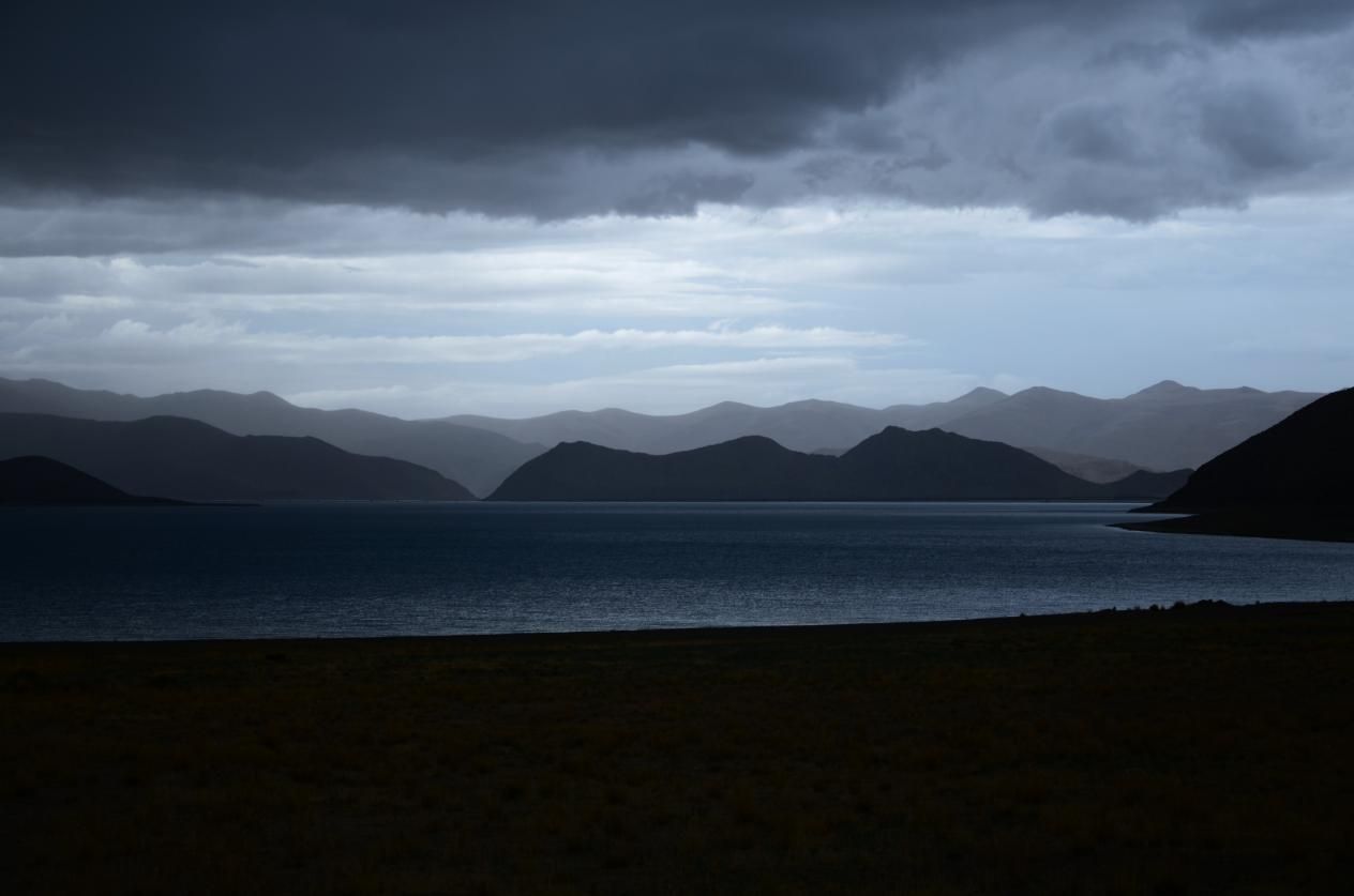 当然,羊卓雍措最惊喜的颜色,莫过于暴风雨来临的之前:有人文艺的形容:有一种水墨画的意境美,虚实相生,动静皆宜,着墨清浅。