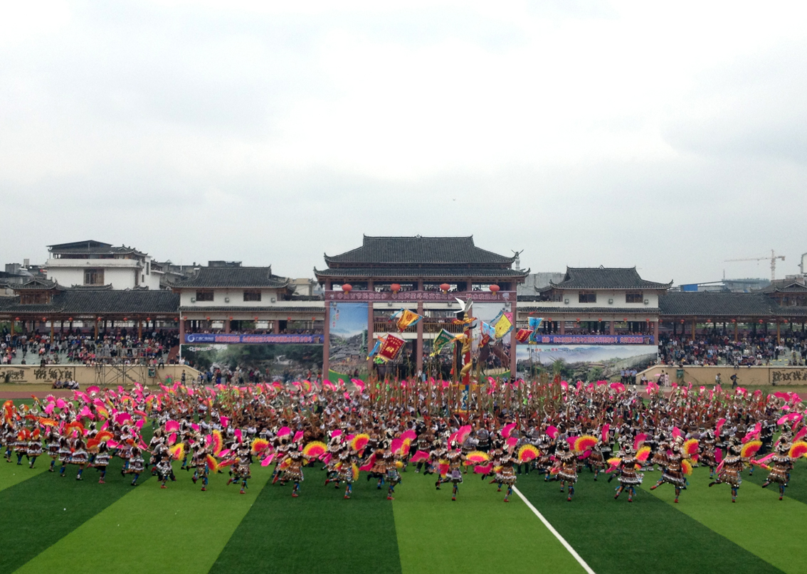 “锦鸡舞”也是在铜鼓和芦声伴奏下,由中年以上的苗族妇女在铜鼓坪上表演的传统祭祀性舞蹈,这个舞蹈充分体现了苗族人民自古对飞鸟图腾的崇拜和向往。她们头戴银饰,身穿黑色短上衣,腰间束若干条五彩镶边,末端坠挂银牌和流苏似锦鸡华丽羽毛的彩条长裙,臀部被高高垫起效仿锦鸡高翘的尾羽。她们围圆圈起舞,舞蹈动作缓慢,在或向前或向后的舞步中,模仿锦鸡频频“踱步”“旋转”和“飞翔”,随动作变化而使腰间彩带起落飘散的舞姿,把人们的心又带回到远古时代。象征凤凰的“锦鸡舞”,充分表现了苗族妇女为祈求民族富足和五彩人生虔诚而肃穆的场面。