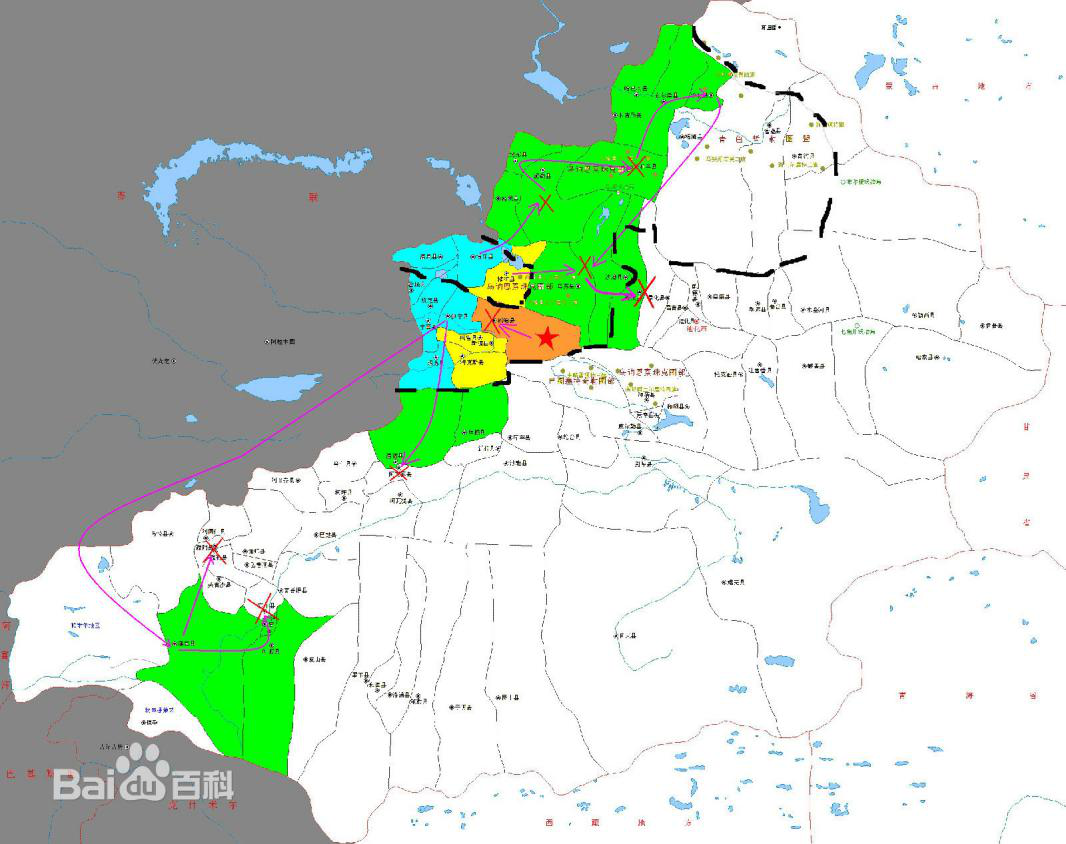 后期是随着第二次国共内战全面爆发,国民政府在新疆省也实行反苏反共策略,原来参加联合政府的“三区”方面人员在1947年撤回,随后在1948年成立了新疆保卫和平民主同盟,直到1949年新疆和平解放,“三区”方面与中国共产党方面首次建立直接联络并合流。