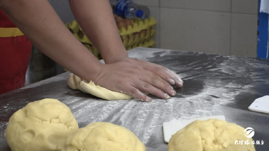 第四步是成饼。第一层是皮,第二层是酥心,第三层是馅料,手法参照包汤圆,包成球状之后压成饼状即可;