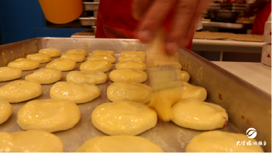 第五步是烤制。烤制之前在饼的上层刷一层油和蛋黄液,参考时长为30-40分钟,参考温度为200度左右。