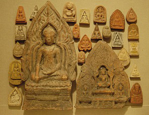 在泰国最北边的城市清莱的一座古寺里,年长的僧人告诉我,在泰国,帕肯(“泰国擦擦”,泰语为“Phra-Kruang”,这个名词在标准的泰文词典里的解释是:用于避凶消灾的小型佛像,作用相当于护身符、祈愿物、供奉物。泰国的Phra-Kruang至今没有一个公认的中文名称,既然“擦擦”是译音,我便挑了两个最接近泰语Phra-Kruang发音的字给它:帕肯)的使用方式是这样的:最早是在修建寺庙的时候放入佛塔内,因为古帕肯的内容全是佛像,经过高僧们开光后放入塔内有增加灵气的作用。百姓通常是到寺庙请回自己需要的帕肯回家供奉,或者作为还愿,出资请寺庙制作一定数量的帕肯,供奉在寺庙、家中或者赠送亲友。