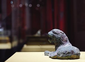1月19日,“瑞虎佑安——二〇二二新春展”在中国国家博物馆向公众开放。图为展品错金“邓市臣”铜卧虎。新华社记者 金良快摄