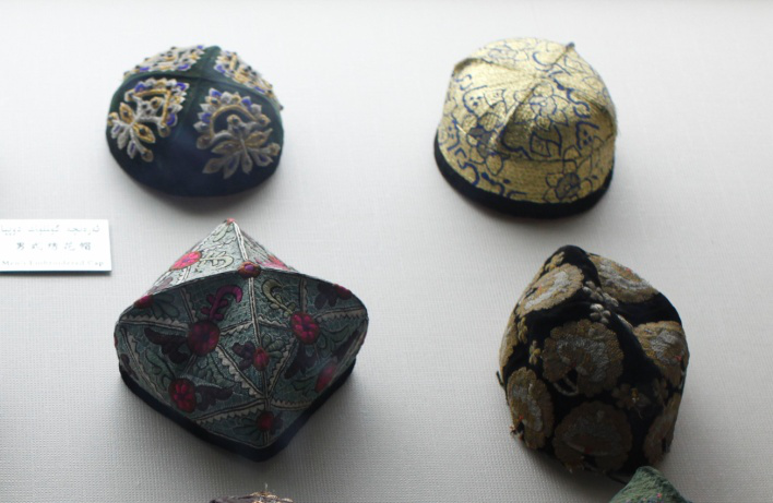 帽子是维吾尔衣饰重要的组合,男女戴帽他们独特的习俗。他们称帽子为“巴西克依木”,有单帽、小白帽、皮帽和花帽。