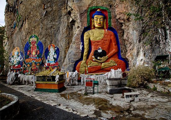 聂当大佛在拉萨市之曲水县西南的中尼公路旁。聂当乡距县驻地36公里,距拉萨市33公里。该寺由尊者阿底峡始建,仲敦巴·嘉瓦迥乃扩建。