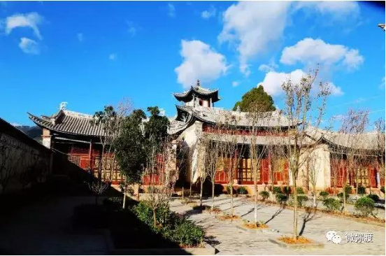 玉皇阁是整个建筑的主体,殿阁式结构,共三层,一层为歇山顶殿堂,二层为正四边形重檐,三层即顶层,六角攒尖顶。有“上出云宵,飞阁流丹,下复西壁”之势。登阁凭窗,可眺弥渡中川全貌,真所谓“瞟天颜与咫尺,逼近西山爽气,带东壁图书,螺峰与晓雾齐飞,比户连云,藏铁柱于内府”,建筑的耸拔,区位的优势,风景之美丽,已被精简之词所概括。今日遇见,今日的观览,无疑是意外的所得,平静的生活,平凡的每天,也有惊喜,又有所得,便是不辜负每一个日子的流逝,便是不辜负光阴的恩赐。在幽静的院落里,心头再次有清风拂过的感觉,清爽的,宜人的,禅意的,让我沉醉,让我智慧,让我思绪飘远,让我心神清灵。