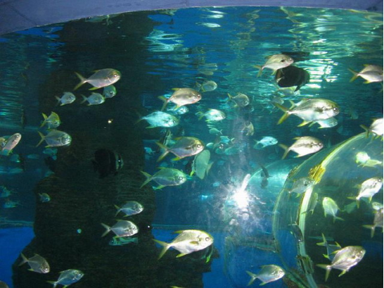 展厅有目前国内最大的水族展缸,创四项之最:最大的圆缸直径长达11米;最深的缸体高达13米,有三层楼体的深度;最重的缸内水体超过1000吨;最奇的四面通透的缸体隧道从圆缸中部直穿而过。这里还可欣赏人鲨共舞、奥运之风、美人鱼等精彩表演,体验人与自然和谐共处典范。