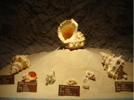 汇集世界600多个种,7000多枚多姿多彩,各种形态的珍稀贝类和中国四大名螺,还有一枚国内绝无仅有的镇厅之宝--龙宫翁戎螺,价值高达60万人民币。