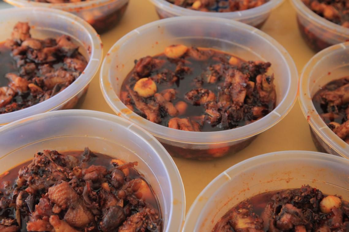 炒鸡用的酿酒由上等糯米采用传统酿制工艺酿成。阳朗辣子鸡必须用辣椒为佐。辣椒选择辣味适中的二道辣椒,取指般大小油脂丰富含有糯性的辣椒晒干或烘干,采用传统方法加入姜蒜制作成糍粑辣椒侍鸡肉焖成熟后,放辣椒入锅与鸡肉和匀,通过一定的火候,辣子鸡就制作就成功了。
