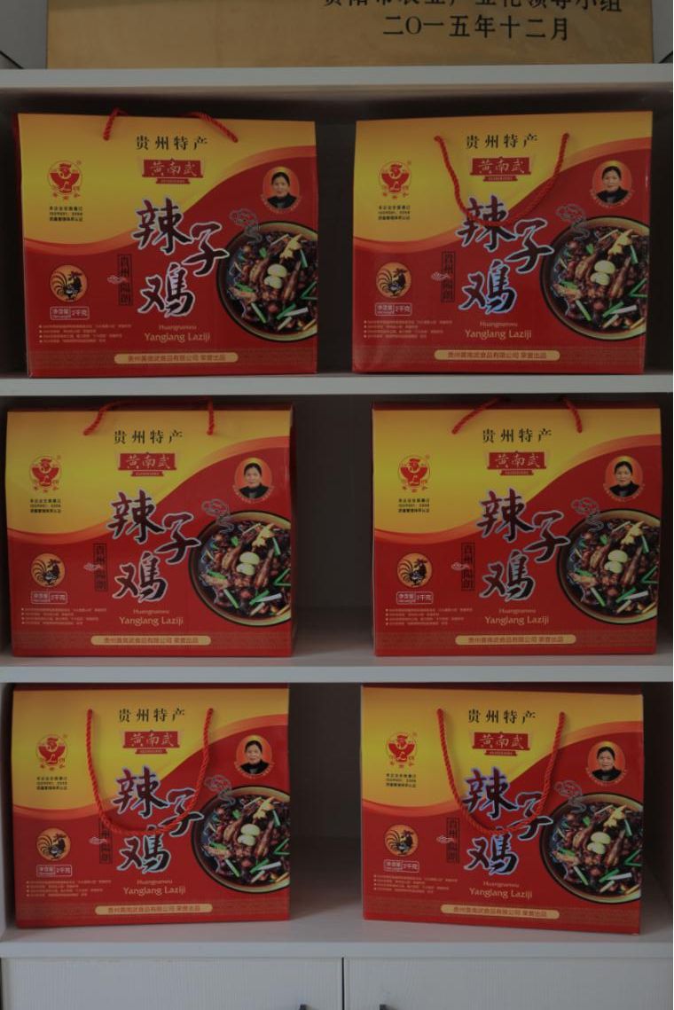 黄南武结婚到阳朗,继承家传,以其独特的辣子鸡制作技艺炒卖辣子鸡,使阳朗辣子鸡成为贵州著名美食,后来远销香港台湾和日本。一九九零年,叶兴林(叶老大)在火车站开阳朗辣子鸡饭馆生意很好。叶老大阳朗辣子鸡也成为品牌。