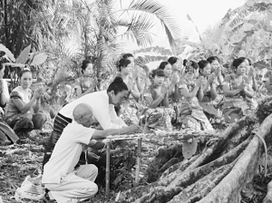 傣族群众祭祀竜林,表现了其敬畏大自然的理念。资料图片