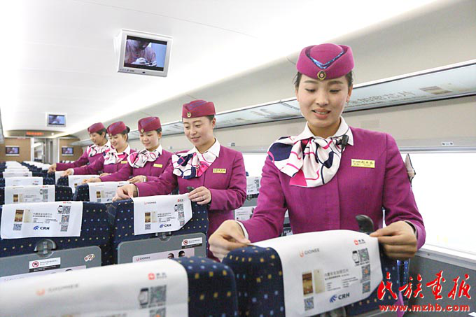 担任贵阳至昆明高铁值乘任务的“动妹”们进行系列安全演练和培训,确保为旅客提供优质服务(张贵忠 摄影)