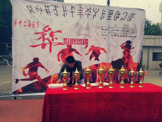 5月18日北京的天气刚刚好,既没有盛夏的炎热,也没有寒冬的冰冷,不冷不热的天气给在京彝族运动会和场上的运动健儿们增添了许多活力和耐力。第十二届在京彝族运动会的体育活动和文艺项目丰富多彩,中央民族大学的运动场上吸引了许多在校的其他各兄弟民族的广泛参与,当天的比赛项目包括在京彝族男生的篮球赛、足球赛以及女生们的篮球友谊联赛,男生和女生们的篮球队服上还各自写着以彝文书写的队名、口号和名字,在球场上展示着多样的民族风采;除此之外,还举办了一系列的彝族传统体育项目,包括摔跤、射箭、掰手腕、背新娘等活动。
