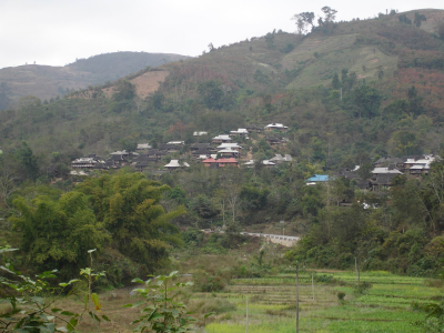巴卡基诺族文化生态村是民族文化生态村建设项目五个试点村之一,所在的巴卡小寨,是位于云南省西双版纳州景洪市基诺山基诺族乡与勐腊县勐伦镇接壤地带的一个基诺族自然村寨,隶属于景洪市基诺族乡巴卡行政村。2006年2月27日,笔者从景洪市出发经由勐腊县睦伦镇进入巴卡基诺族文化生态村进行为期三天的考察。在睦伦镇搭乘摩的沿着213国道翻过山口前行约30分钟就到达。进入村口巴卡小寨,村寨依山而建,位于公路上方约300米,房子紧挨房子排满了半个山腰。据文献资料显示,巴卡小寨是1974年才由巴卡老寨迁出建立的新寨。笔者考察时,村子有62户,270余人,居民中除了汉族2人,哈尼族2人,傣族、拉祜族各1人外,全部为基诺族。在213国道旁位于进入巴卡小寨的路口,立有三个牌子:一个是丁字形水泥标牌,用拼音和汉字书写“巴卡小寨”,显然是213国道原本设置的标牌;一个是黑底白字半圆木头标牌,用汉英两种文字写着“巴卡基诺族文化生态村”、“美国福特基金会资助”,这是文化生态村建设产物;另一个是白色瓷砖镶边的正方形水泥标牌,用汉英两种文字自上而下书写“联合国大学/全球环境基金”“云南农业生物多样性保护与可持续发展”“西双版纳实验示范点”,项目实施单位是中国科学院西双版纳热带植物园和西双版纳国家级自然保护区管理局勐仑保护所,应该是文化生态村建设将巴卡小寨名声提升之后获得资源的见证。