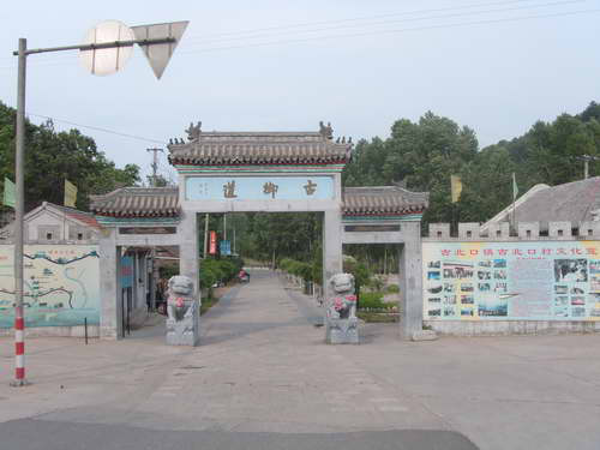 在古北口村南紧邻出关处的隧道旁,一座四米高用行楷镂金大字写着“古御道”的仿古牌楼,格外显眼。沿牌楼望去,在青山绿树的掩映下,一条用青石板铺成的古道蜿蜒伸向蟠龙山深处。古御道在历史上是去往承德、内蒙、东北是南北往来的必经之路。从南北朝建北齐城墙时建造的古御道承载着古北口镇1500年来历史的沧桑。“七郎坟、令公庙、琉璃影壁靠大道、一步三眼井,两步三座庙”,就是口口相传的古北口古镇。古北口历史文化悠久,曾是边关军事和商贸重镇,历来成为兵家必争之地。早在春秋战国时期,燕国就在此筑墩设防, 南北朝时的北齐也在此地构筑石砌长城,隋朝时期修缮燕蓟段长城于古北口设军镇,唐朝始称“古北口”,金朝筑 “北口城”,元朝设古北口驿,明朝洪武十一年(1378)修筑万里长城的同时修建了古北口镇城,又称“城上之城”。清代设总兵、总督府,置重兵戍关。还有1934年国民党军事委员会北平分会为纪念在古北口长城抗战中牺牲的抗日将士而修建的古北口战役阵亡将士公墓,古北口民俗展室等大小景观30余处。