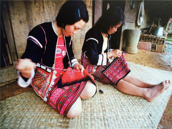 “绣”是指黎族妇女用彩色线在棉、麻等布料上绣制出各种图案,或者在织锦图案编织完成后,再进行补绣,提高图案的效果。黎族织锦的主体图案一般都是刺绣的,主体图案中的若干局部都要靠刺绣来完成。