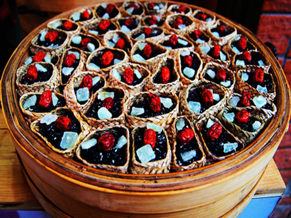 畲族乌饭得名副其实,吃起来连碗筷也被染粘成乌黑色。不过它的味道相当不错,吃一口清香糯柔,细腻惬意,别有情趣。倘若将乌饭贮藏在阴凉通风处,则数日不馊。食用时,以猪油热炒,更是香软可口,堪称畲乡上等美食。
