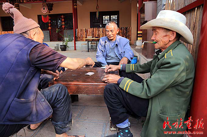 紫溪社区主任李加斌告诉记者,紫溪彝村是1994年因为支持重点工程西静河水库建设搬迁到这里的,居住着彝、汉、苗3个民族,其中彝族人口占多数。2012年以来,在各级部门的关心支持下,紫溪镇按照“将紫溪彝村打造成为在全省乃至全国范围内最具发展潜力、最彰显民族特色一流新农村”的要求,全面推进特色民居建设、基础设施建设、产业建设、民族文化建设,把紫溪彝村打造成为了经济发展领头村、民生改善标杆村、基层党建先进村、彝族文化榜样村、“四群”工作典范村、民族团结示范村和新农村建设一流村。现在村里有农家乐23户,客栈6家,村民人均年收入1万元以上。青山绿水边,孩子们在玩耍,老人们在屋檐下聊天,73岁的杨开启俏皮地告诉记者:“搬迁后的生活比原来住在山上没有强十倍,也有八九倍,我们的钱包鼓起来了,村里还组织我们去大理、丽江、西双版纳旅游呢。”50多岁的杨正国原来住在山上时,家里兄弟姐妹多,没有经济能力娶媳妇,搬迁到紫溪村后,政府帮他盖了新房,他也娶到了媳妇。随着经济收入的改善,人们对文化生活的需求也越来越强烈,46岁的彝族汉子杨应平是个多才多艺的彝族人,他不仅开农家乐,还在村子里组织了一个37人的彝族民间乐队,村里的婚丧嫁娶、孩子满月、乔迁新居、开业等都可以看见这个乐队演出的身影。