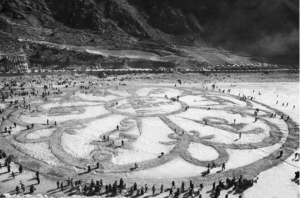 每年冬季,世居通天河流域的藏族同胞依当地传统,以“沙为墨冰为纸”,在冰封的通天河面上书写巨大的“六字真言”“吉祥八宝”图案,以祈求新的一年世界和平、五谷丰登、六畜兴旺。