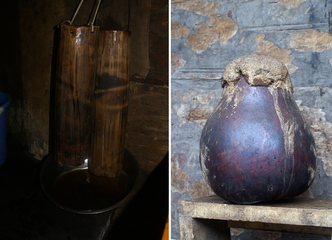 珞巴族没有饮茶习惯,但喜好饮酒,谷物的一半都用于酿酒。酒分为水酒、滤酒、熟酒、白酒等。水酒是把粮食蒸熟后,掺上适当比例的酒曲发酵,待熟后,加水滤出即成。滤酒是把发酵的粮食放在一个竹篓里,悬挂在梁上,从上面浇冷水,从下面流出的就是滤酒。这种酒如果再煮就是熟酒,一般供妇女饮用。白酒是把酿好的酒放到锅里蒸煮,将蒸汽收集后冷却即成,度数在15-30度之间。在珞巴族地区,鸡爪谷酒是待客的佳品。