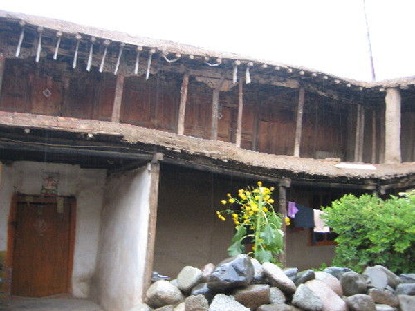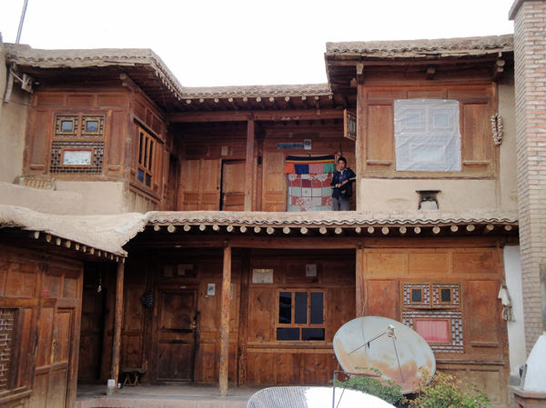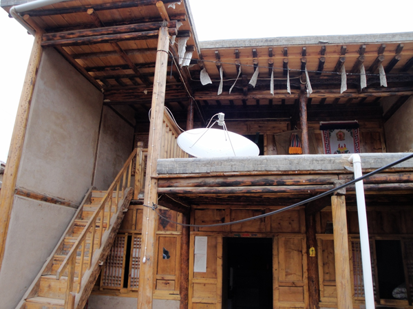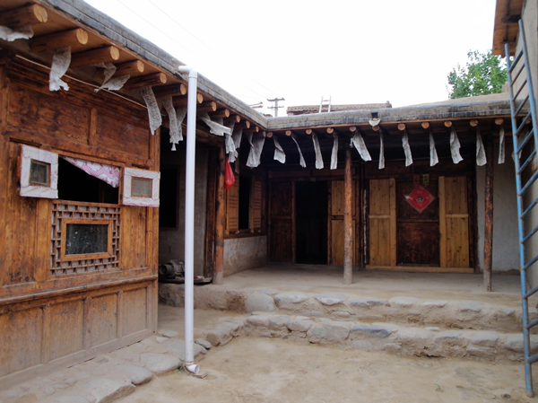 为改善狭小的寨内空间,当地居民均修建了二层木结构楼房,和青海乡村民居庭院宽敞的特点形成了反差。寨内民居庭院多为四合院式,房屋为土木结构平顶房,一般民居都有飞椽花藻之类。屋内一般以木板作隔扇,室内有护炕木板、护墙木板墙围,且多雕花草于其上。房屋一般面阔三间,正面以木板隔墙并装上木板条方格小花窗。佛堂设在二楼,佛堂所在的房屋一般都是上房,和佛堂不同向的两边厢房一般做卧室。院落中央一般都有竖挂经幡的旗杆,还设有桑台,具有明显的藏式特点。