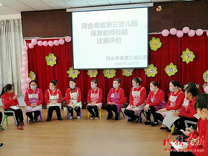 阿合奇县第三双语幼儿园教师开展技能比赛
