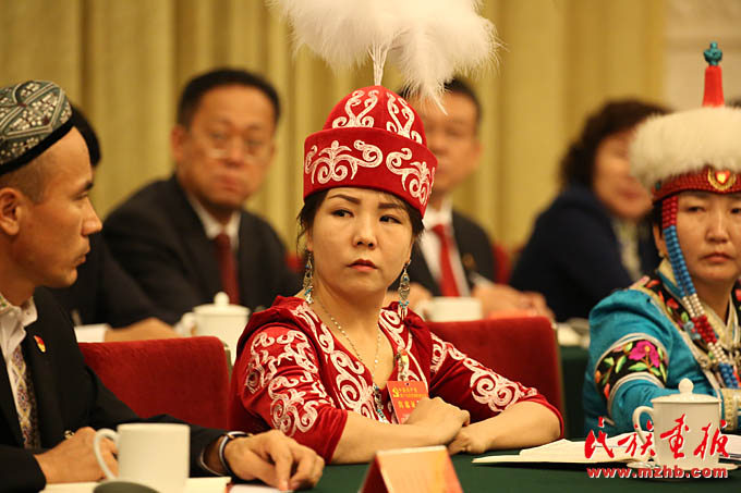十九大代表、新疆维吾尔自治区讨论会上古丽孜娜提•吐坎发言(滕俊 摄影)
