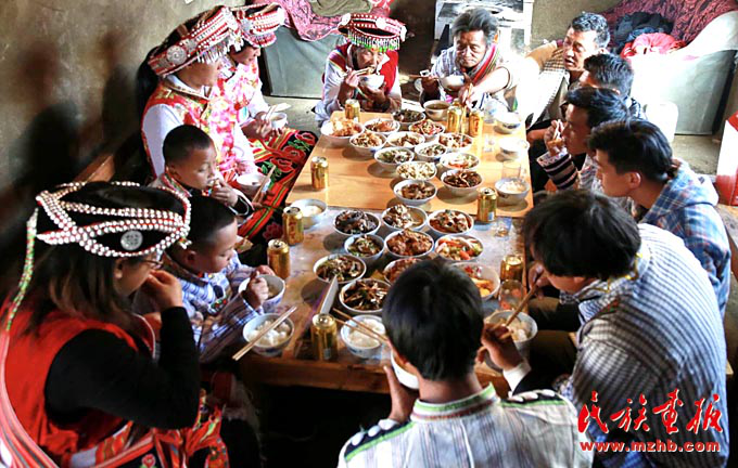“过去我们一家吃除夕团圆饭,有点肉就不错了,哪会有如此丰盛的宴席。你看如今这满桌子十几道菜,吃不完、喝不完,全靠党和国家的政策好啊。”在谈到春节的变化时,云南省维西傈僳族自治县保和镇腊八底村的蜂大兴深有体会。
