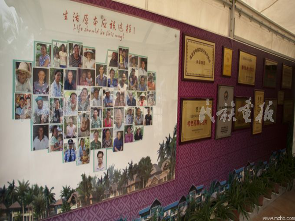 在什进村介绍区的橱窗内一幅心形的大照片上是什进村村民的张张笑脸