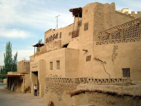 维吾尔族的传统民居多为带有地下室,农家还用土胚块砌成晾制葡萄干的镂空花墙的晾房。住宅一般分前后院,后院是饲养牲畜和积肥的场地,前院为生活起居的主要空间,院中引进渠水,栽植葡萄和杏等果木,葡萄架既可蔽日纳凉,又可为市场提供丰盛的鲜葡萄和葡萄干。信仰伊斯兰教的民族喜好清洁,很重视沐浴,特别讲求水源的洁净。在没有渠水可引的地方,几乎每户都在庭院自打一口井,并严格保护水源,使其不受污染。