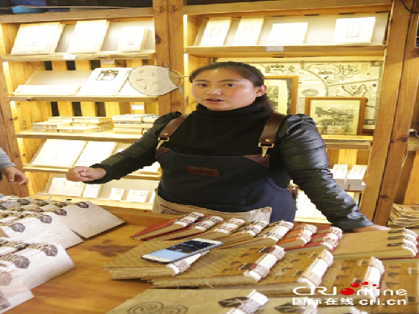 东巴纸坊工作人员介绍东巴纸的历史