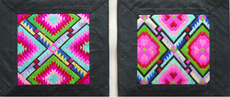 3.网绣,又称“格锦”,是用针线的横、直线条组织成网状结构来表现刺绣的图样,用并行线与另一组并行线交叉而成各种形状。首先打好骨骼叉呈小方格,组织好线条再打斜线,仍为边起边落,与直成45°,然后在格内加绣短直线,每个单位纹样均匀、对称呈现出网状效果。