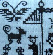 挑花(又叫十字挑花)是满族民间刺绣中广为流传的一种针法。用交叉的十字组成抽象的图案,粗犷简洁,是人们日常生活用品中的主要装饰图案,色彩比较单一,后来发展为复杂的十字绣。