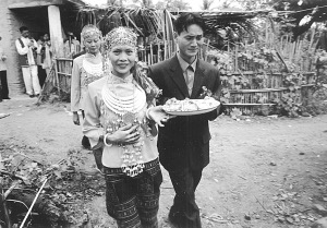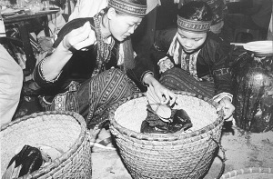 农历腊月初四是黎家人认定的兔日,吉利的日子。海南省保亭响水镇合口管区什栋村的女青年陈银蕾和离该村不远的什 村男青年吉永权就选这天结为百年之好。他们经过了自由恋爱,一切均按照黎族风俗提亲、定婚、举行婚礼。
